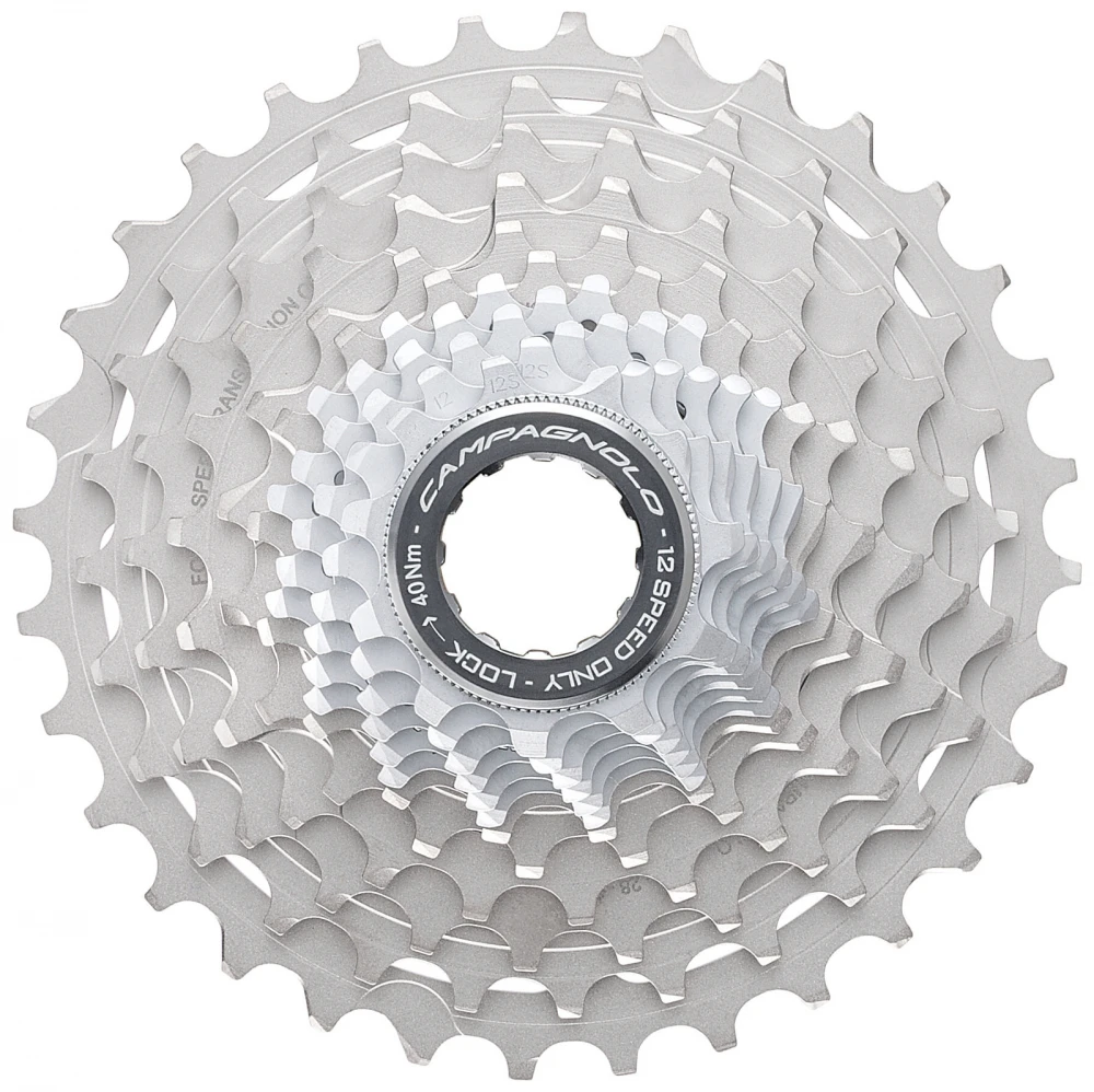Die neuen Ritzelpakete Super Record 12 Speed weisen dünnere Ritzel, einen geringeren Platzbedarf und unveränderte Abmessungen auf im Vergleich zu den Ritzeln 11 Speed, wodurch alle Bedürfnisse mit nur zwei Kassetten erfüllt werden (11:29; 11:32). Das neue 12. Ritzel ermöglicht ein lineares Auf- oder Absteigen, wobei bis zur siebten Position nur ein Zahn übersprungen wird und der Radfahrer den optimalen Gang unter jeder Bedingung findet.